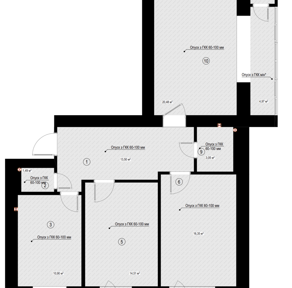 Криві стіни та низькі стелі це перші особливості, з якими стикнулися на цьому обʼєкті. Відповідно, першими головними завданнями було зберегти мінімальний опуск стелі та вирівняти стіни штукатуркою.
