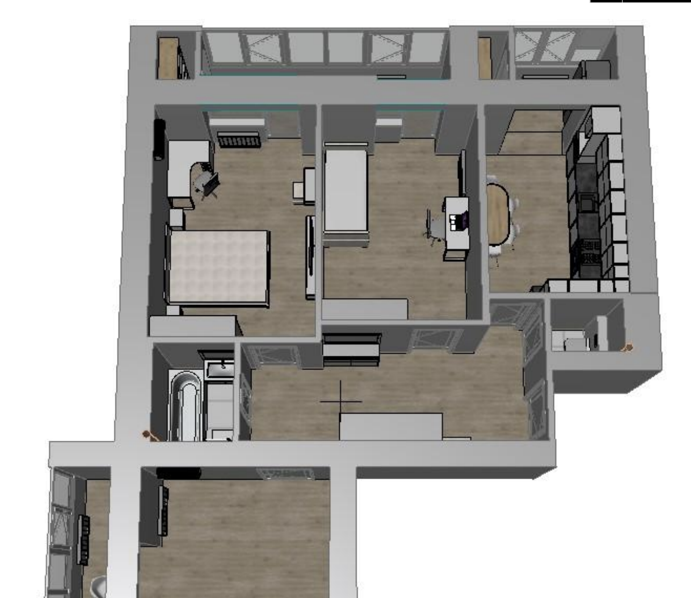 Існуюче планування, яке включає багато комірчин та декілька лоджій, ми зробили максимально практичним та затишним.