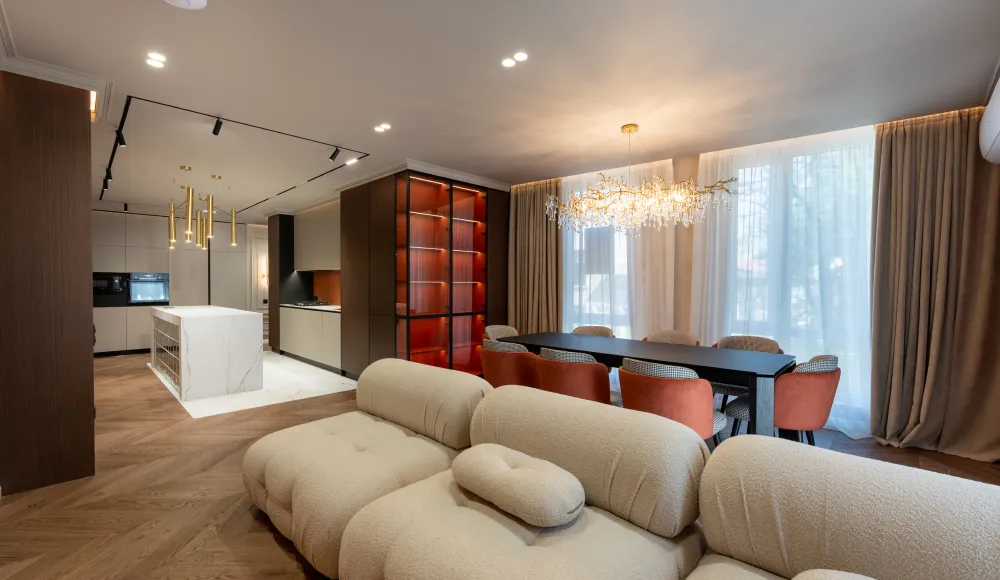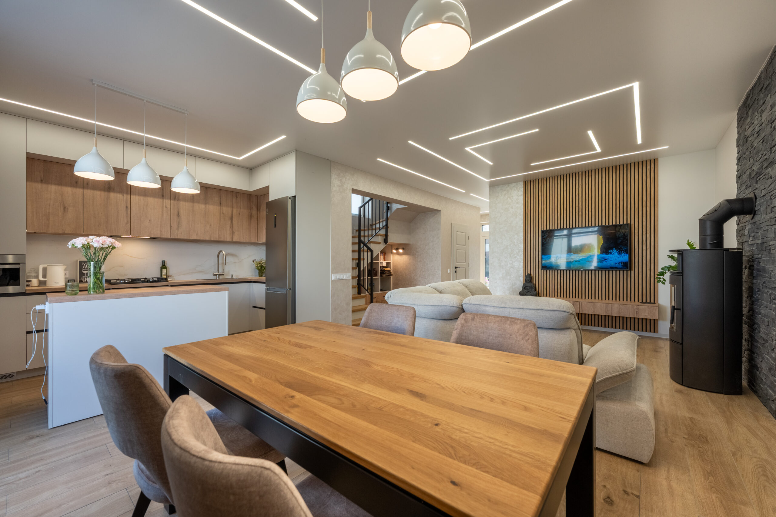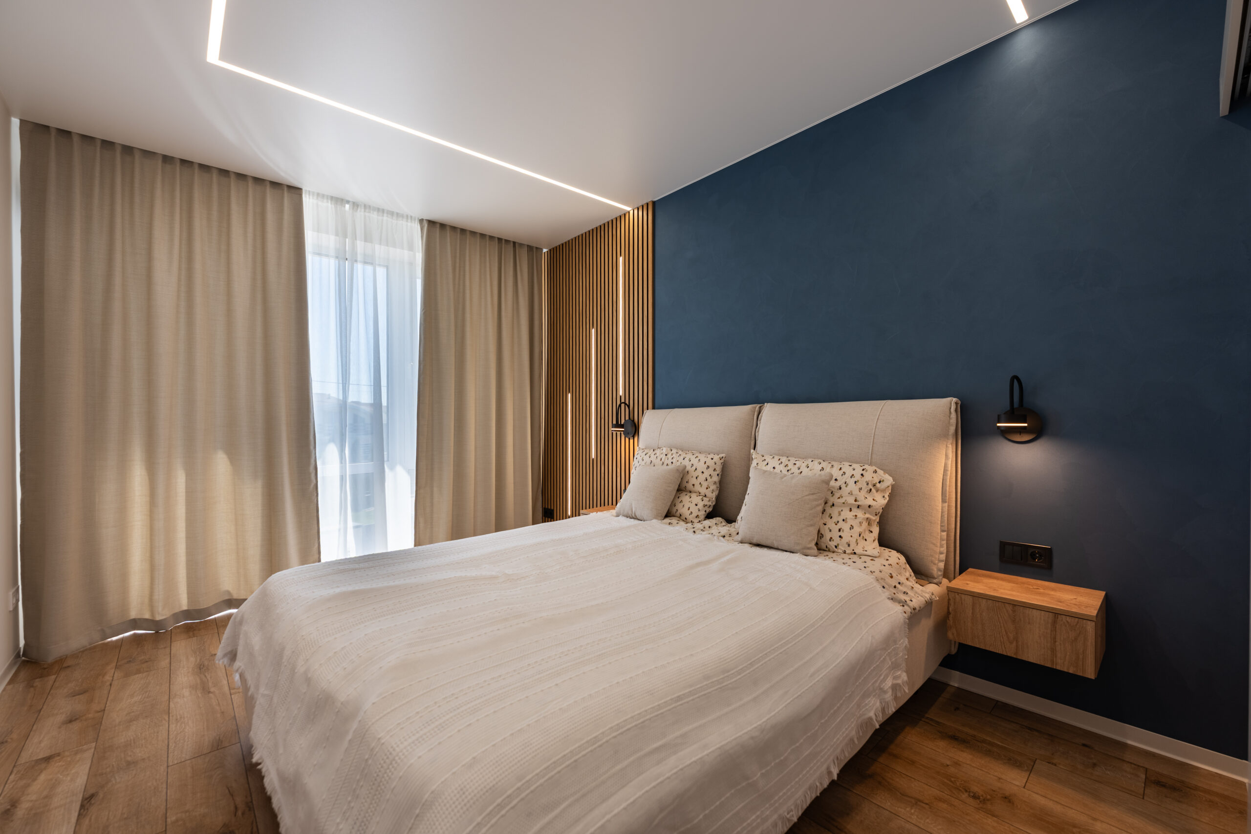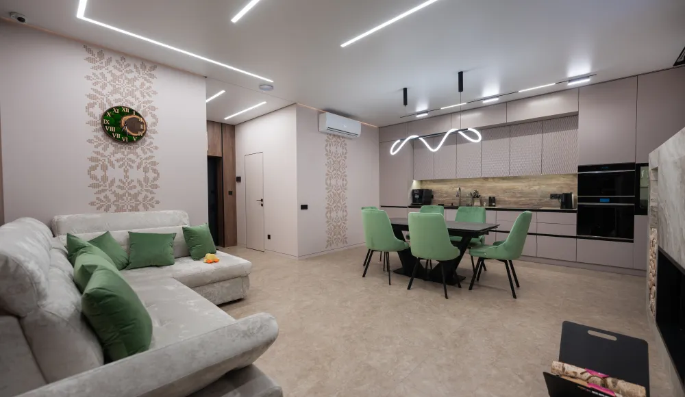 Сучасний стиль та покращений комфорт. Використання трендових дизайнерських рішень: тіньові профілі, магнітне світло та преміальне оздоблення стін.